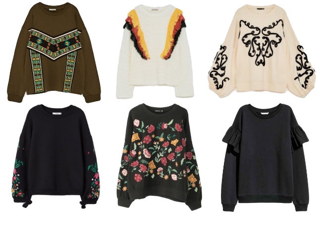 A minha escolha nestes dias recai sempre por uma sweatshirt com detalhes especiais, sejam eles padrões étnicos, pompoms, folhos ou pérolas, que tornem as peças únicas e que aportem um toque diferente ao outfit. Combinadas com umas skinny jeans e umas botas ou sneakers, resultam num look super comfy, simples e bonito.